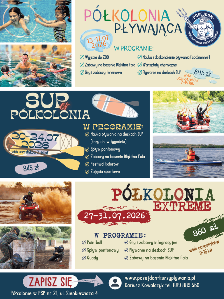 Nasza szkoła pływania oferuje: naukę pływania, doskonalenia techniki, a także poprawy sprawności fizycznej oraz przygotowanie do testów w służbach mundurowych. Prowadzimy lekcje indywidualne oraz zajęcia w małych grupach dla dzieci jak i dorosłych na pływalni Wodna Nuta oraz Akwarium w Opolu.